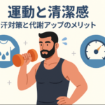 運動後の汗を放置すると肌荒れの原因に。シャワー+洗顔 → 化粧水 → 乳液で保湿まで行うのが理想です。