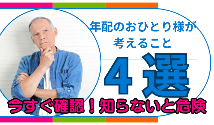 - 【年配のおひとり様が考えること4選】今すぐ確認!知らないと危険